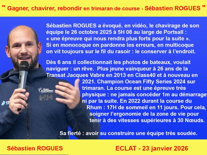 Il partagera comment il a construit son projet de course au large, trouvé des partenaires, monté ses équipes, et affronté les défis majeurs de son métier : victoires, chavirage, gestion de crise, pression de la performance et équilibre vie pro/vie perso.
